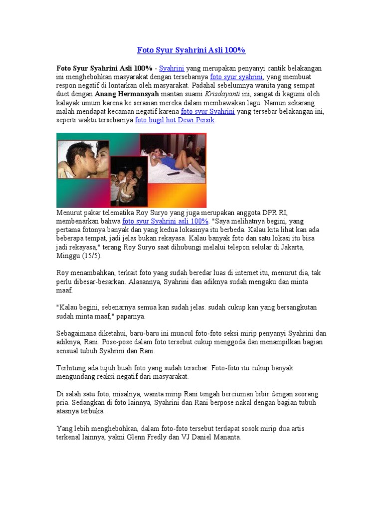 I have no problem because they (aurel and azriel) is need of. Foto buku nikah syahrini dan reino barack yang beredar menjadi sorotan. Walaupun ini bukan kali pertama syahrini berpose hot, namun foto kali ini lebih heboh. Foto syahrini atau foto nakal syahrini yang sekarang ini sedang beredar luas di internet tersebut menurut pengamat foto begonooan roy suryo katanya asli bukan rekayasa. Tapi sekarang ia lebih dikenal dengan nama syahrini.